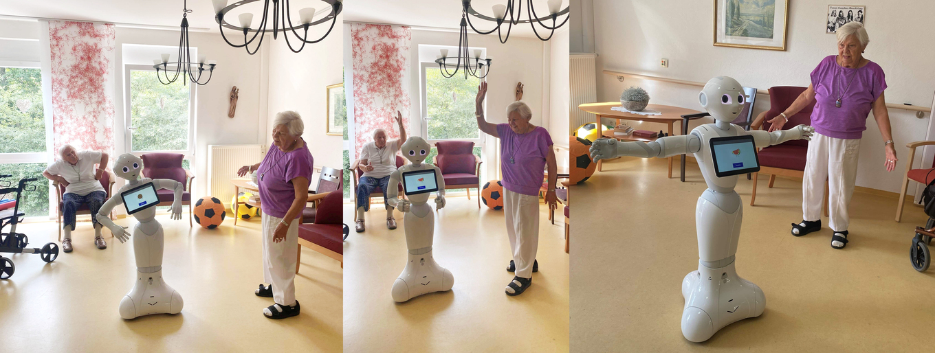 Im Mittelpunkt des Projekts, das von 2021 bis 2023 lief, stand der humanoide Roboter Charlie, der in den vorgesehenen Einrichtungen als sozio-technisches Assistenz-System verstanden und eingesetzt wurde. Er kam überwiegend zur Unterstützung von Gruppenangeboten sowie zur Prävention und Gesundheitsförderung zum Einsatz. Heißt: Charlie lud zu Bewegungsübungen und Tänzen ein (physische Aktivierung), unterhielt die Bewohnerinnen und Bewohner mit Quiz-Apps und Buchstabenrätsel (kognitive Aktivierung) oder gab per Audiofunktion bekannte Schlager und Gedichte zum Besten (sozio-emotionale Aktivierung). „Anfangs gab es Berührungsängste bei einigen in unserem Team. Doch nach und nach wurde allen klar, dass unser Roboter Charlie keine Konkurrenz, sondern eine sinnvolle und entlastende Ergänzung ist“, erklärt Jutta Tandler. Die Projektverantwortliche im Pflegezentrum Travetal der Diakonie Nord Nord Ost in Lübeck hat den Praxistest in allen Phasen eng begleitet. „Unsere Seniorinnen und Senioren waren von Charlie schnell begeistert. Sie empfinden ihn als Bereicherung und machen bei den Bewegungsübungen, zu denen Charlie sie motiviert, ebenso gerne mit wie bei der Beantwortung von Quizfragen.“